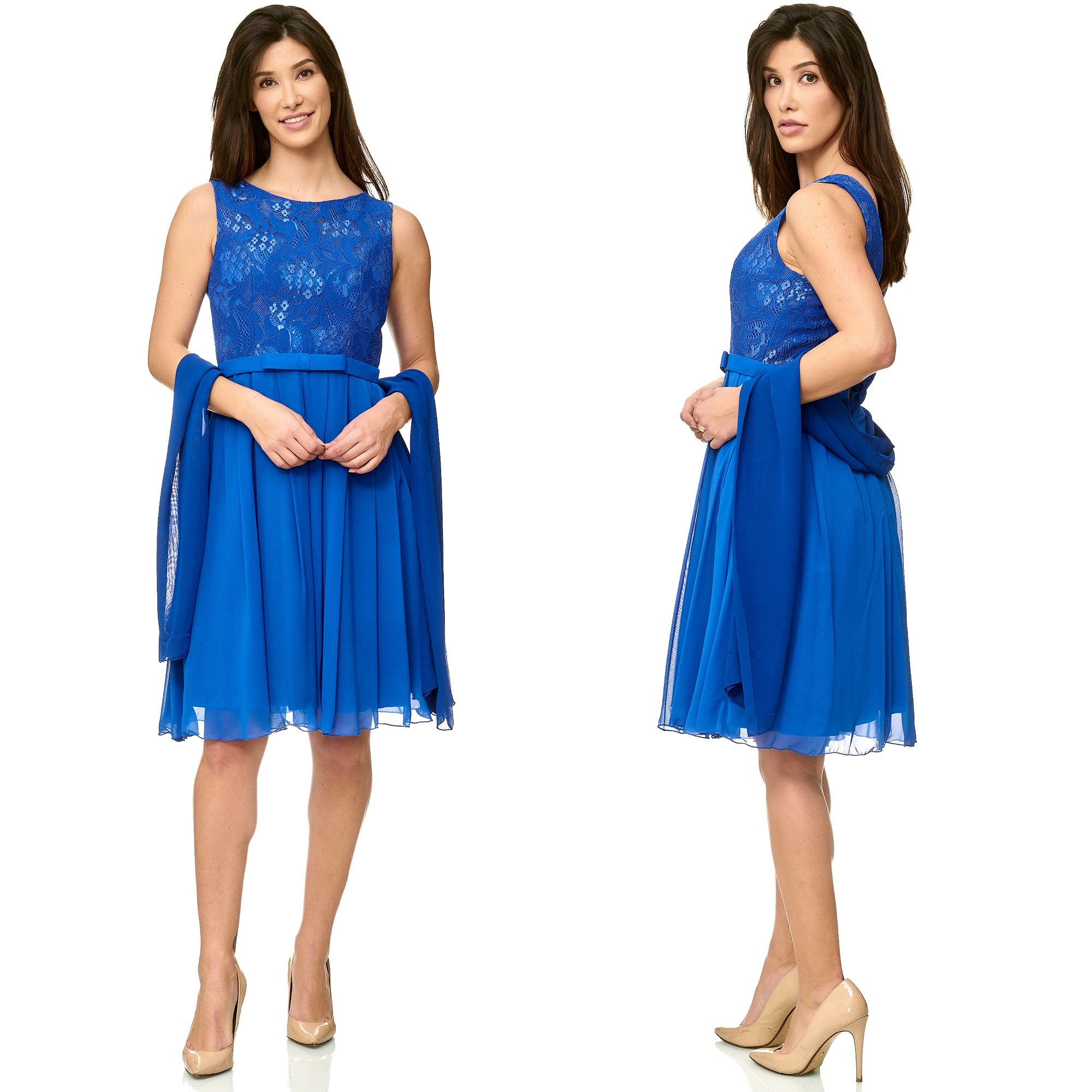 Cocktailjurk koningsblauw schouderbanden chiffon1569