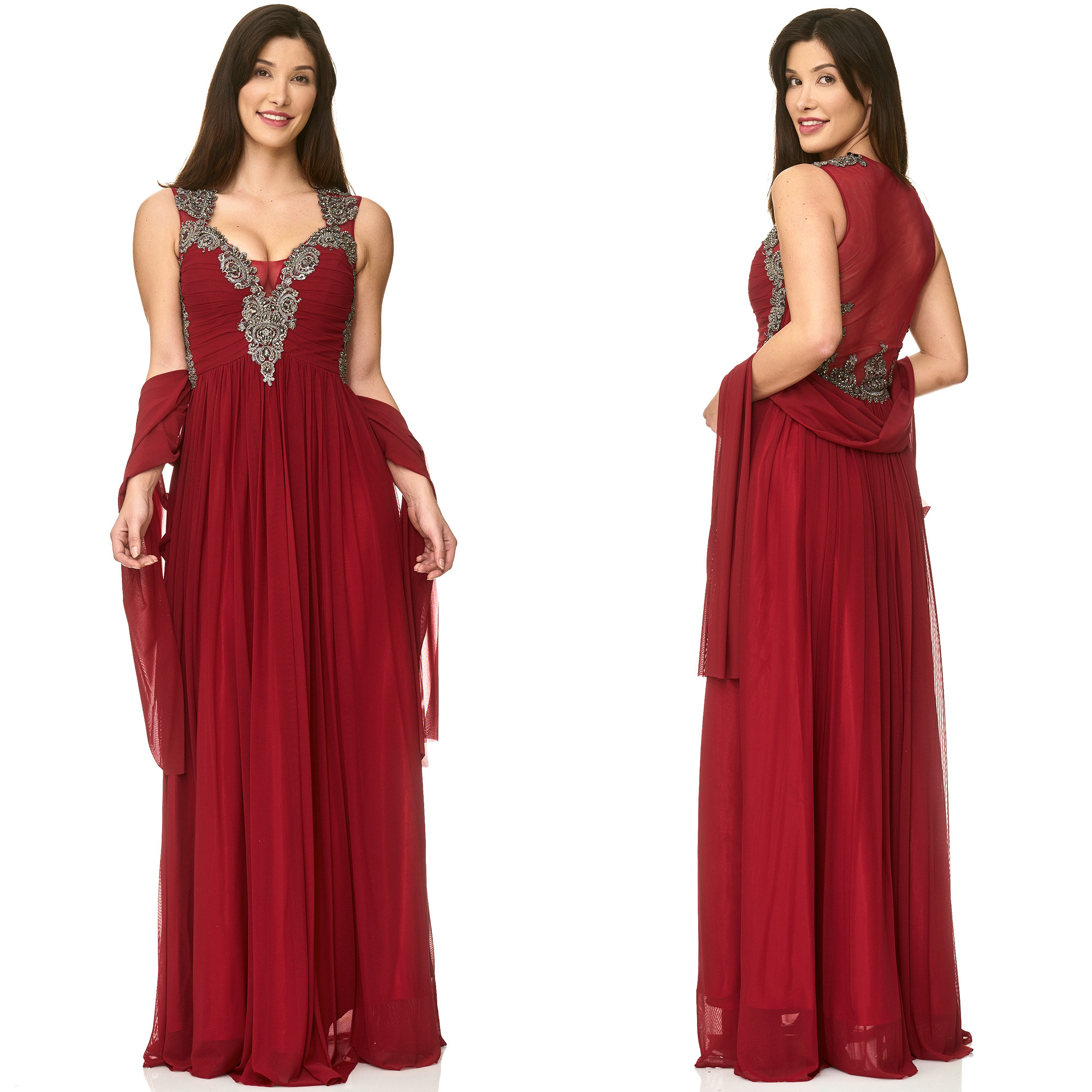 Prachtige avondjurk in chiffon met eventueel een bijpassende stola.