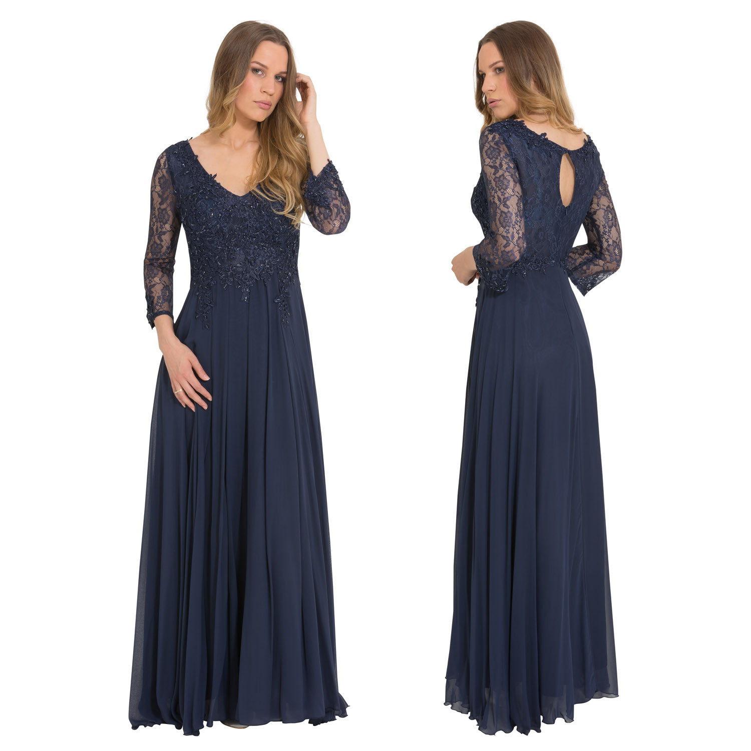 Galajurk marine-blauw lange mouwen chiffon1584