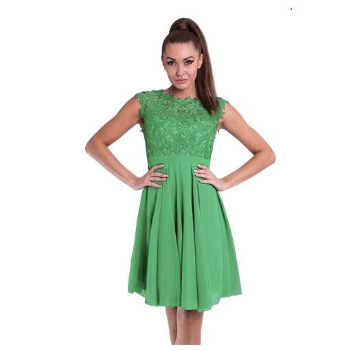Cocktailjurk appelgroen ronde hals chiffon-kantR1271