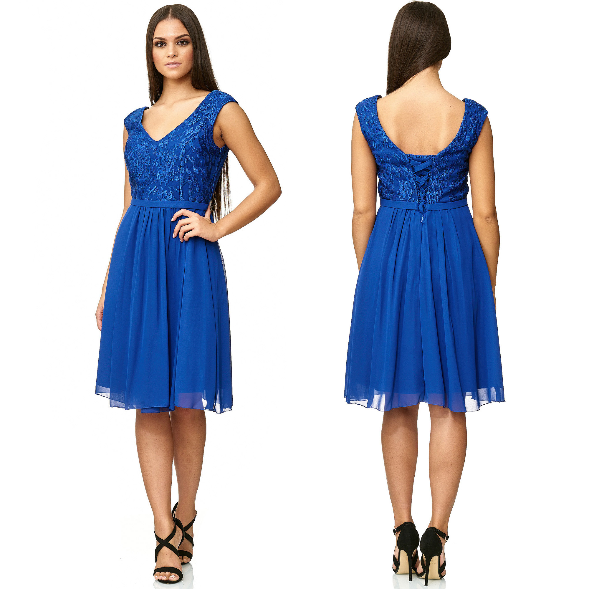Cocktailjurk koningsblauw schouderbanden chiffonR1649