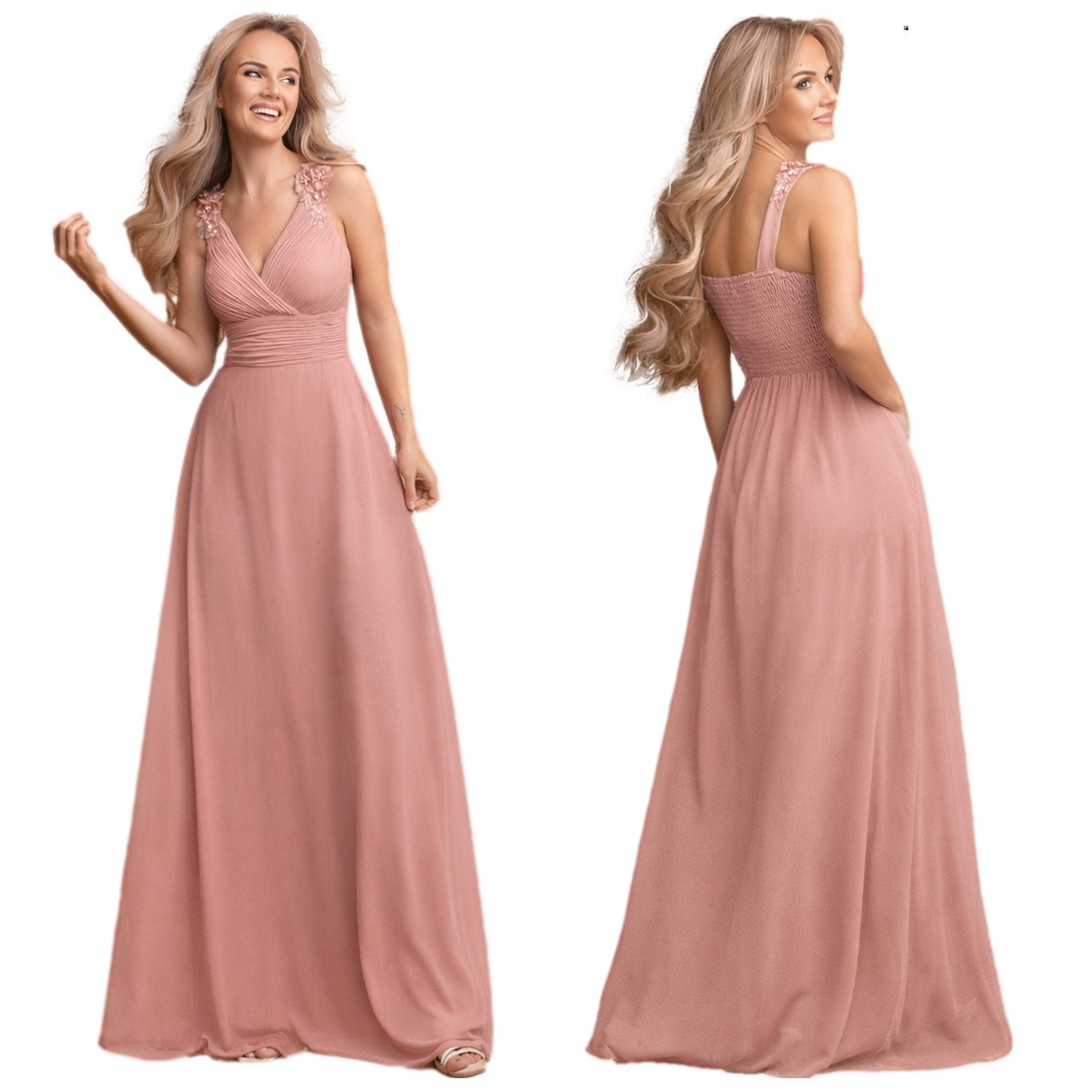 Galajurk oud-rose schouderbanden chiffonHM2103