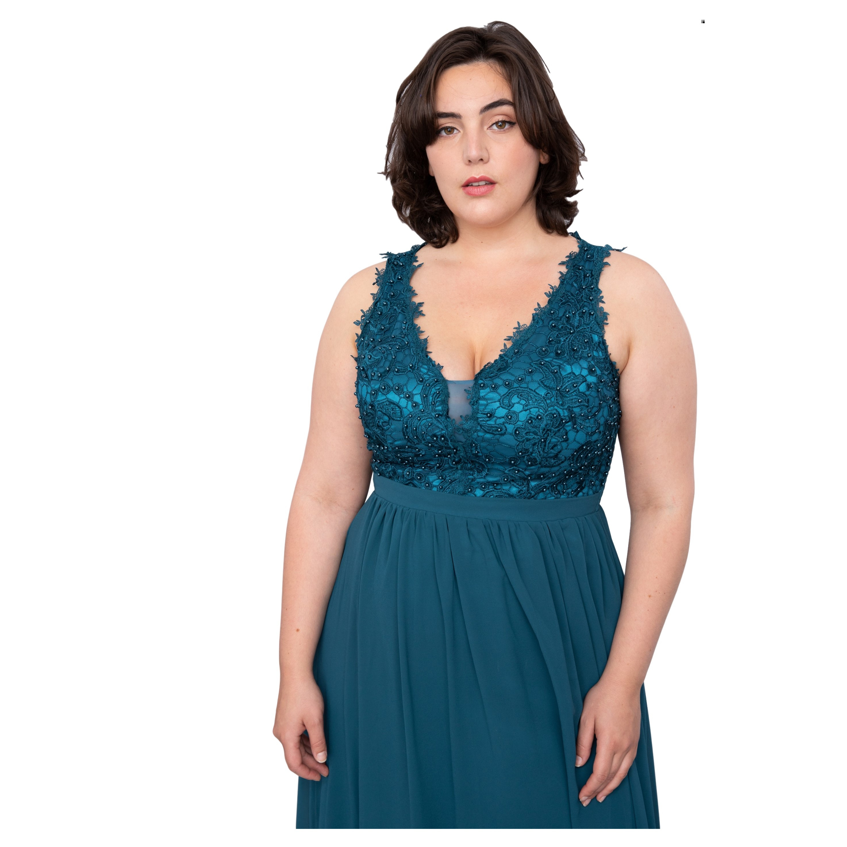Cocktailjurk petrol lage rug chiffonR1340