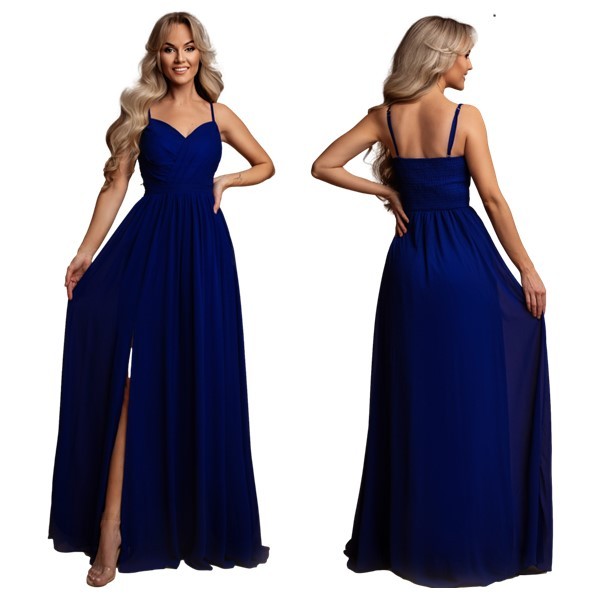 Galajurk koningsblauw schouderbanden-split chiffonR1301