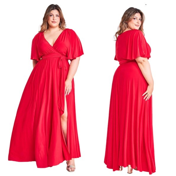 Galajurk rood korte mouwen-split strech-stof (elastisch)DR2565P