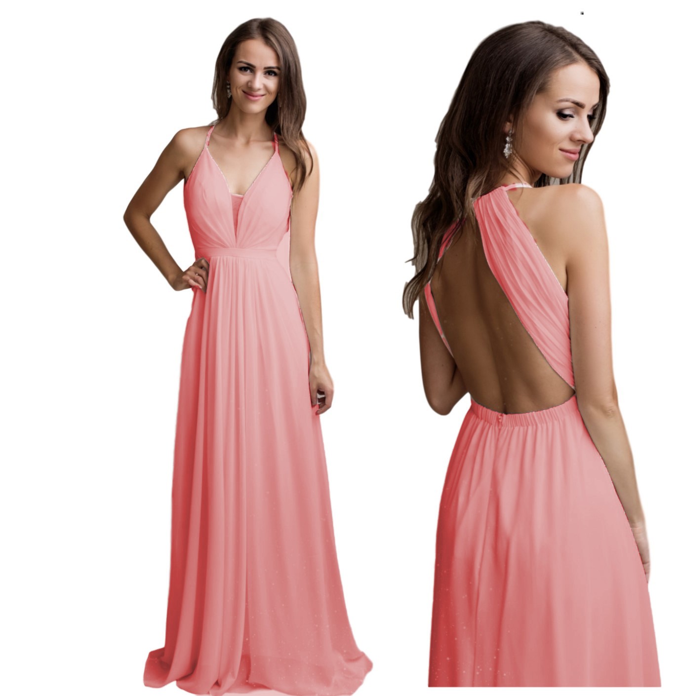 Een galajurk met lage rug. Gemaakt van chiffon.