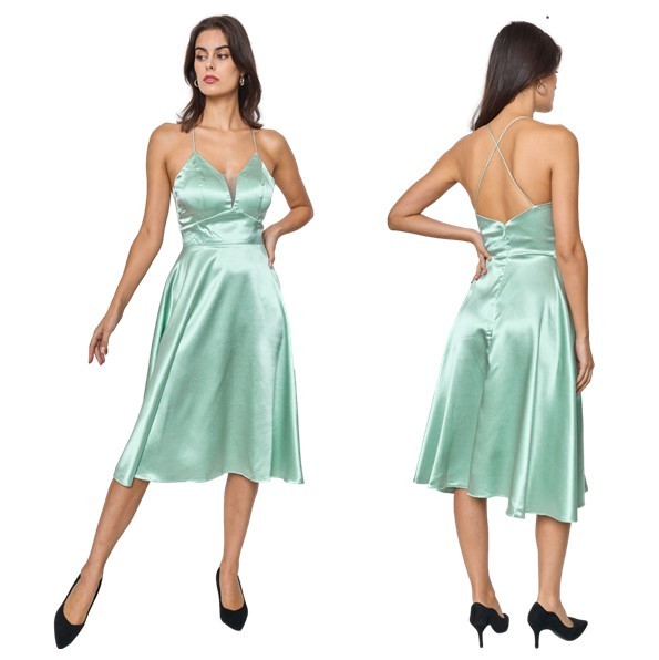Cocktailjurk sage green schouderbanden glans-satijnHM2303