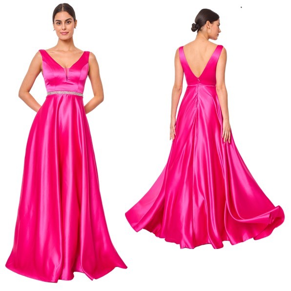 Galajurk fuchsia schouderbanden taft-satijnHM2314