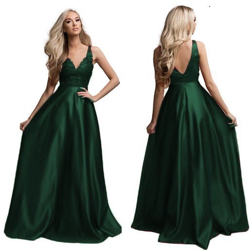 Galajurk donkergroen schouderbanden glans-satijnHM2313