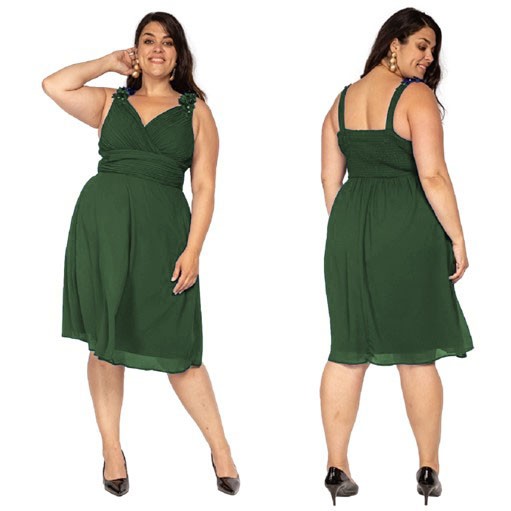 Cocktailjurk donkergroen schouderbanden chiffonHM2103QS