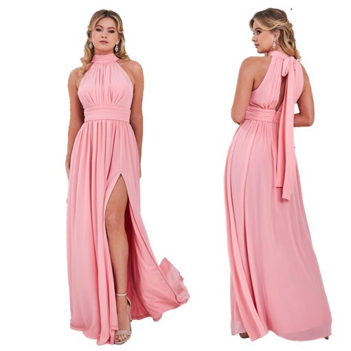 Galajurk roze halter-split chiffonDR3334A