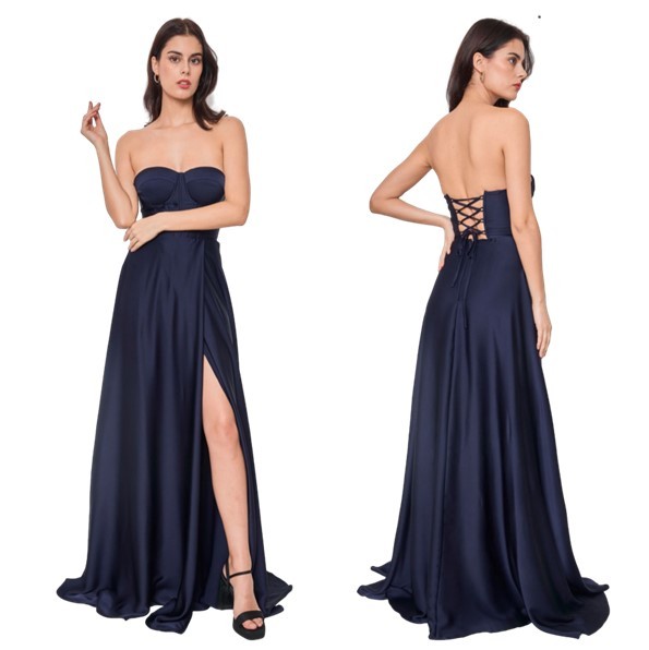 Galajurk marine-blauw schouderbanden-split glans-satijnHM2331-80118