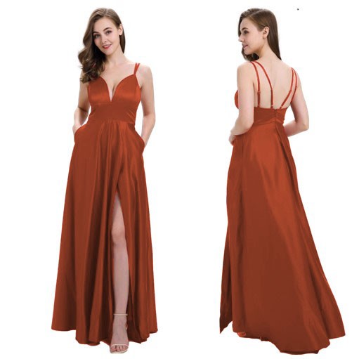 Galajurk roest bruin schouderbanden-split glans-satijn8788