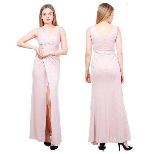 Galajurk roze schouderbanden-split strech-stof (elastisch)8905