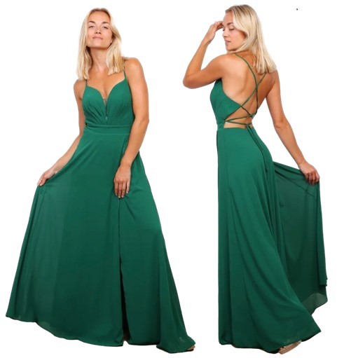 Galajurk appelgroen lage rug-split chiffonFY030