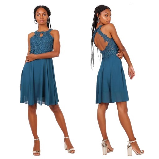 Cocktailjurk donkergroen lage rug chiffonH2019
