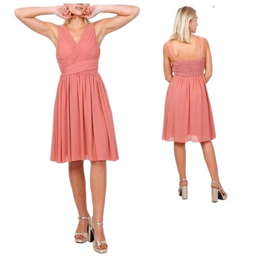 Cocktailjurk roest bruin schouderbanden chiffonH2073