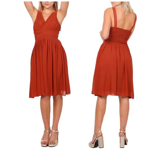 Cocktailjurk indian red schouderbanden chiffonH2073