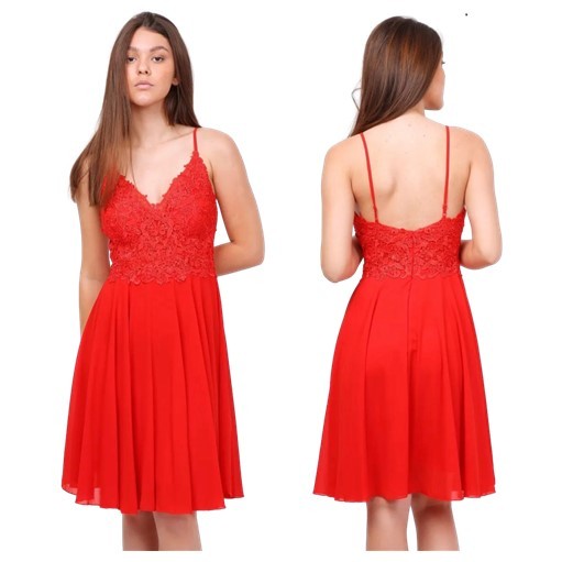 Cocktailjurk rood schouderbanden chiffonH2090
