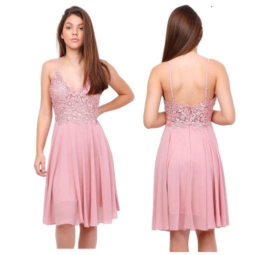 Cocktailjurk oud-rose schouderbanden chiffonH2090