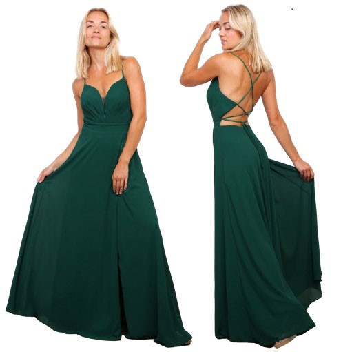 Galajurk donkergroen lage rug-split chiffonFY030-A
