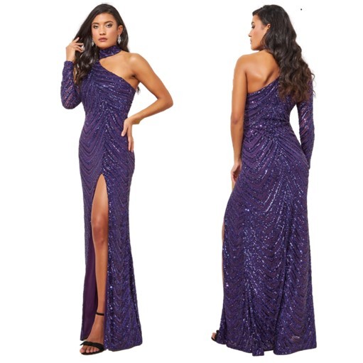 Galajurk paars halter-split glitter-stofDR3618-A