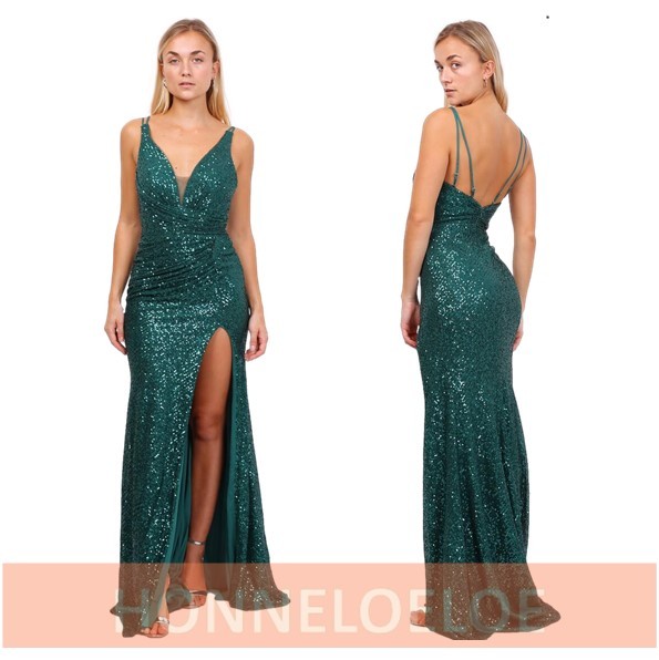 Galajurk donkergroen split glitter-stofYC98302-1