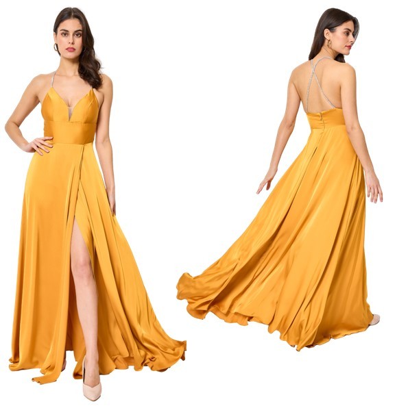 Galajurk van satijn met schouderbandjes.