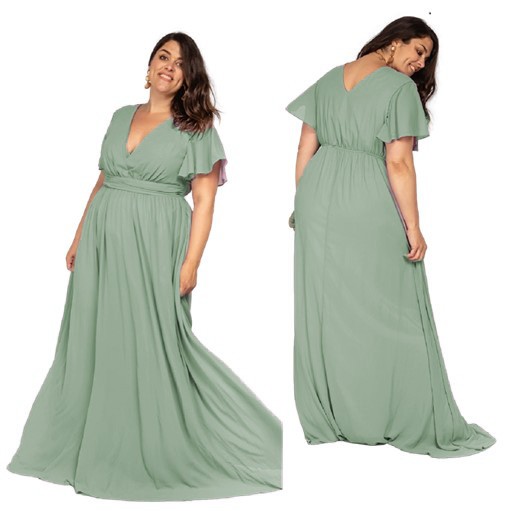 Galajurk olijfgroen kap-mouwen chiffonHM2305QS
