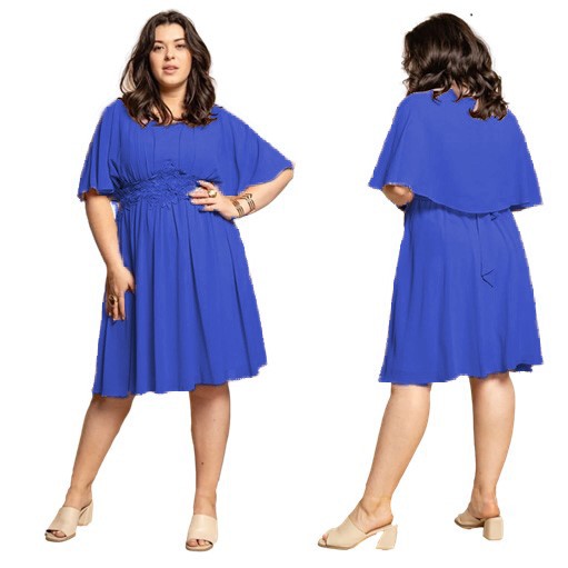 Cocktailjurk koningsblauw korte mouwen chiffonH2076