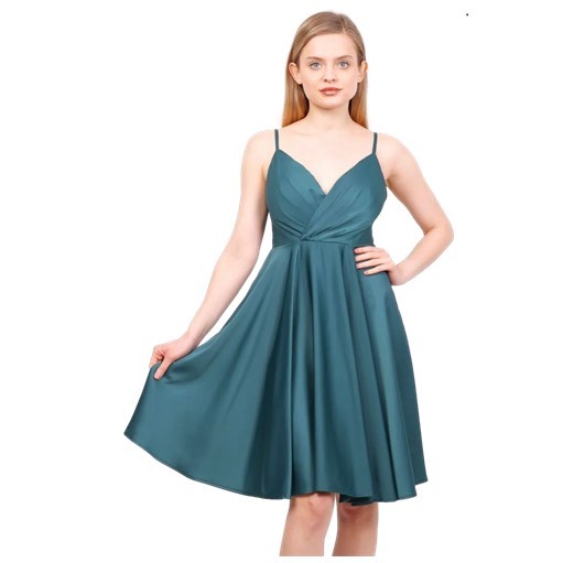 Cocktailjurk donkergroen schouderbanden glans-satijnH2098