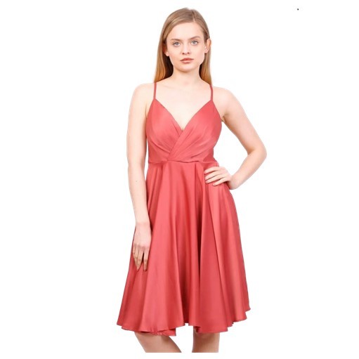 Cocktailjurk roest bruin schouderbanden glans-satijnH2098