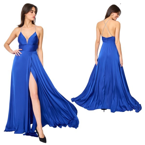 Galajurk koningsblauw split glans-satijnHM2298