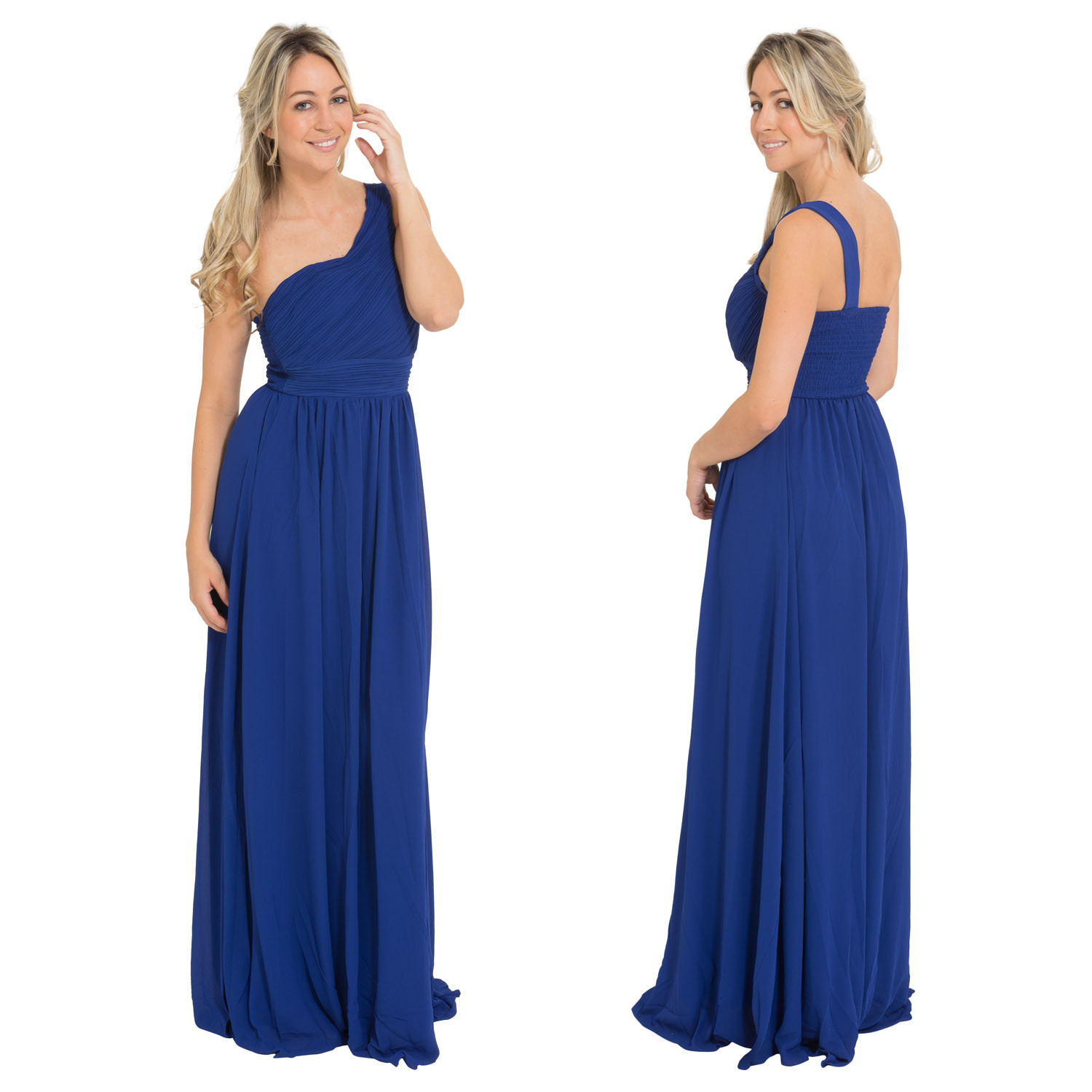 Galajurk koningsblauw één schouderband chiffonR1263-A