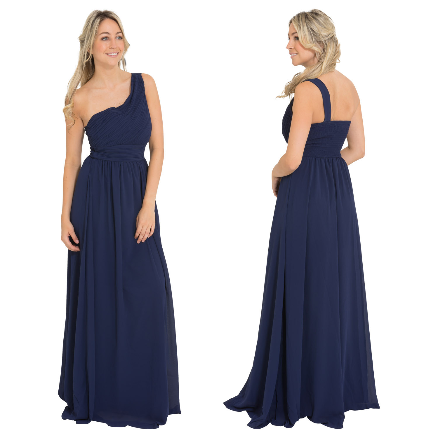 Galajurk marine-blauw één schouderband chiffonR1263-A