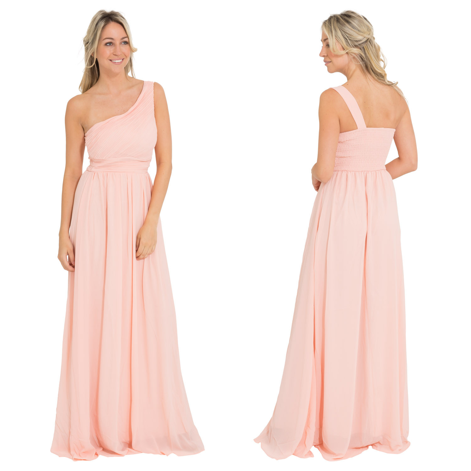 Galajurk zalm-rose één schouderband chiffonR1263-A