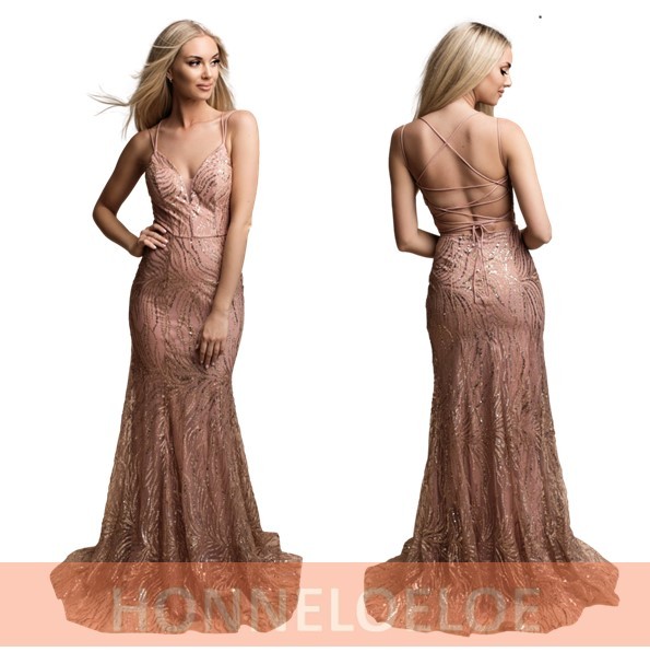 Galajurk oud-rose lage rug-zeemeermin glitter-stofHM2380