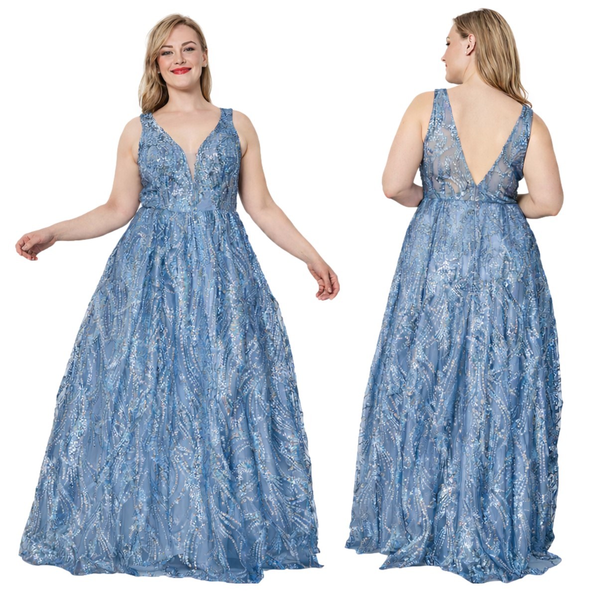 Galajurk ice blue schouderbanden glitter-stofHM2235QS