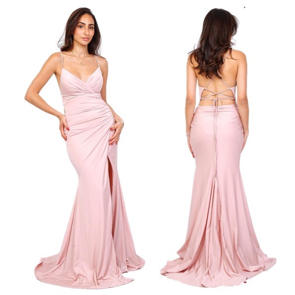 Galajurk oud-rose lage rug-split strech-stof (elastisch)H2109