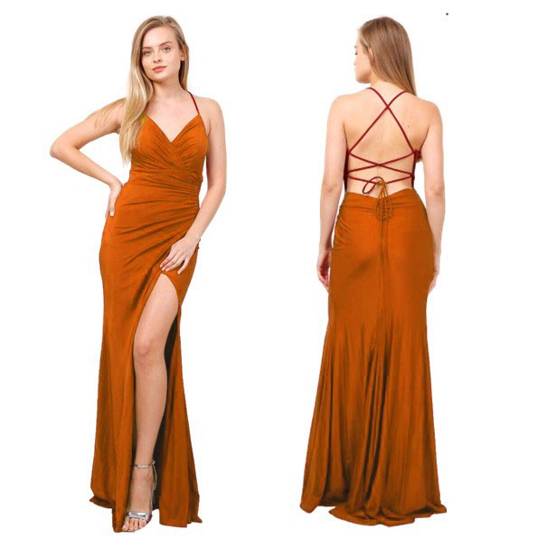 Galajurk roest bruin lage rug-split strech-stof (elastisch)H2109
