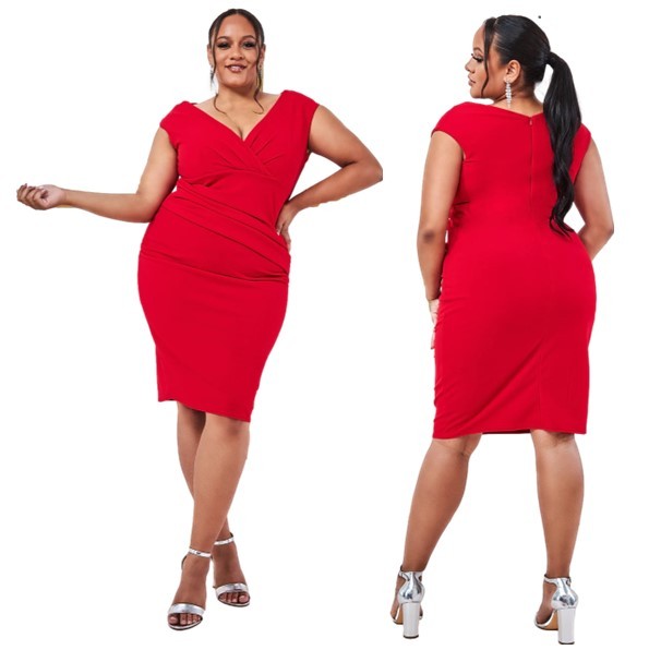 Cocktailjurk rood schouderbanden strech-stof (elastisch)DR1092QS
