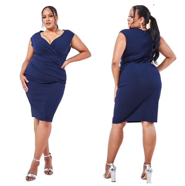 Cocktailjurk marine-blauw schouderbanden strech-stof (elastisch)DR1092QS