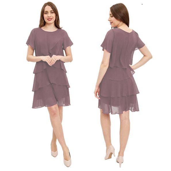 Cocktailjurk oud-rose kap-mouwen chiffon8343-1