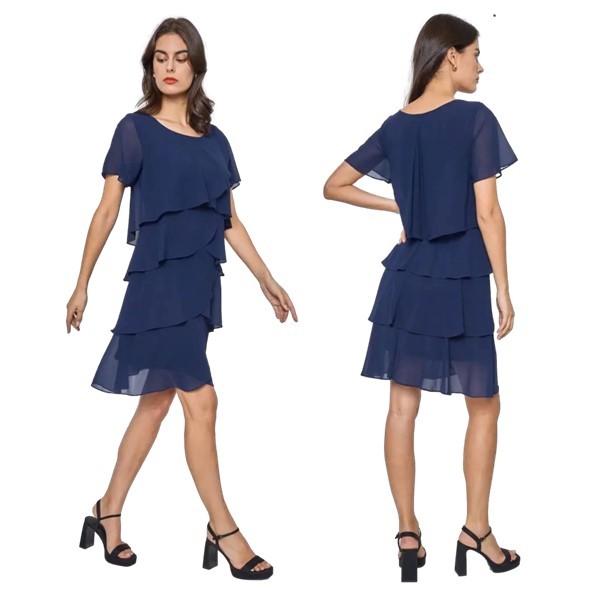 Cocktailjurk marine-blauw kap-mouwen chiffon8343-1