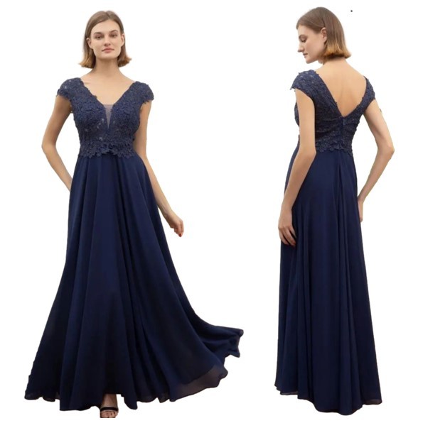 Galajurk marine-blauw schouderbanden chiffon9336