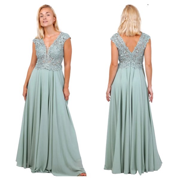 Galajurk sage green schouderbanden chiffon9336