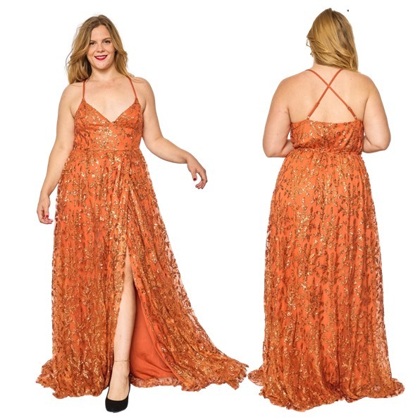 Galajurk roest bruin schouderbanden-split glitter-stofHM2385QS