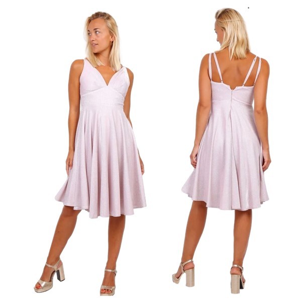 Cocktailjurk oud-rose schouderbanden glitter-stofH2117