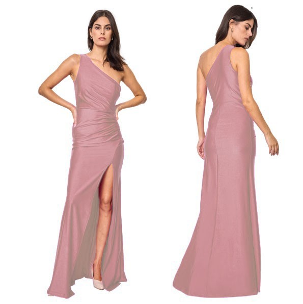 Galajurk oud-rose één schouderband-split glans-satijnHM2383-A