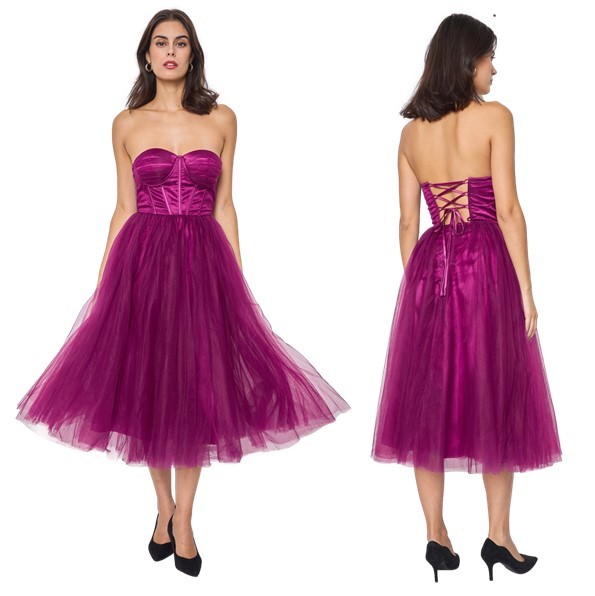Cocktailjurk aubergine strapless (optie schouderbanden) tuleHM2327